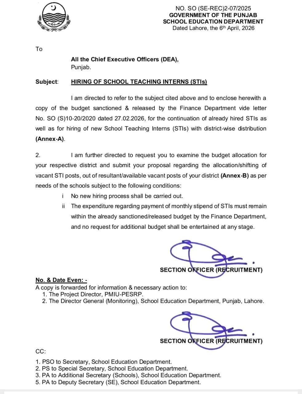 For the schools, it means that they can finally fill the vacancies in their teachers’ rooms. This official letter coordinates the efforts of the Finance Department and the Education Department. It brings everyone together on one page to ensure the smooth functioning of the education system in Punjab.
